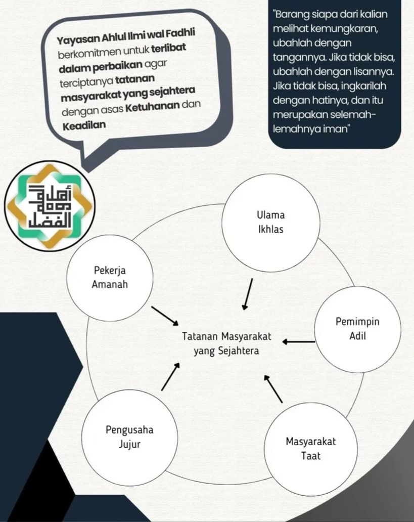 Yayasan Ahlul Ilmi Wal Fadhli didirikan di Kota Bandung pada tanggal 10 Desember 2024 oleh KH. Fahmi Hadi Shalehuddin dan Salman Al-Farisi, dengan dukungan penuh dari: